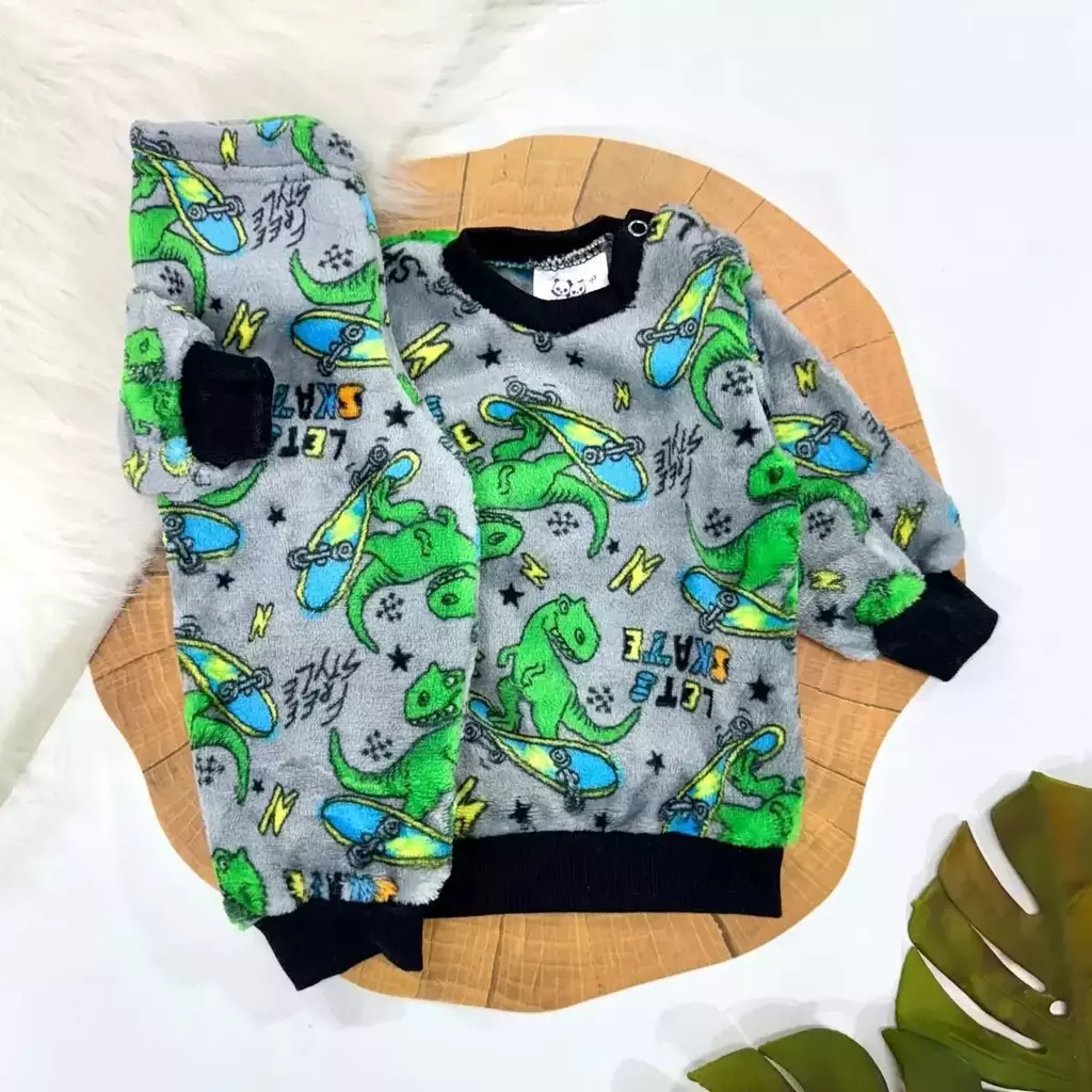 Esse conjuntinho é ideal para aquecer os pequenos com muito conforto e diversão nos dias mais frios.